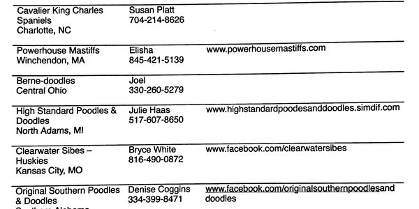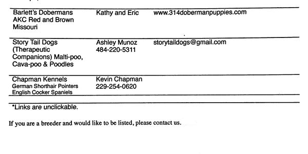 If you are a breeder and would like to be listed, let us know. 731-803-7822